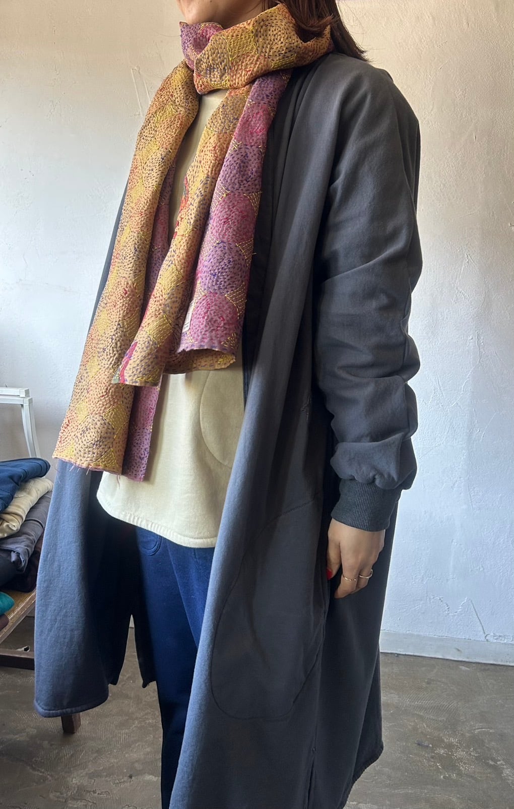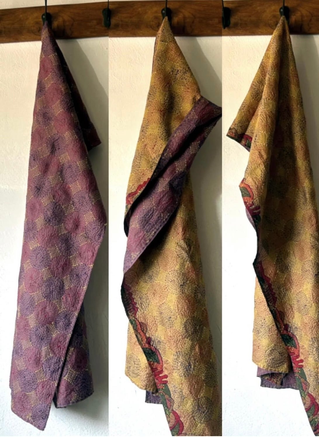 カンタ刺繍はインド・ベンガル地方の手工芸品です。連続したサークル刺繍を施してあります。色や柄は弊社が選び、アレンジしております。